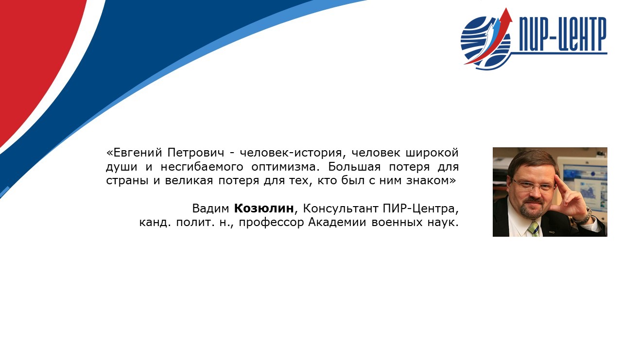“Я хочу сказать, что Евгений Петрович очень многое сделал и для 12-го Главного управления, и для государства российского в сфере развития именно международного военно-технического сотрудничества. Я вспоминаю 1995 год, когда впервые были подписаны два стратегических соглашения под рамочным соглашением о сотрудничестве в ядерной области, которые подписали Клинтон и Ельцин. Евгений Петрович под этой рамкой подписал два соглашения: одно о безопасном хранении ядерного оружия, а другое о безопасной транспортировке. Он был первый, как Гагарин в космосе, так вот он пробивал эти соглашения”.