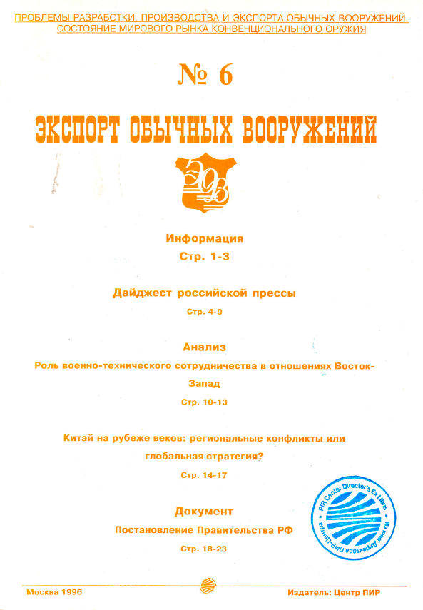 Экспорт Обычных Вооружений №1, 1996