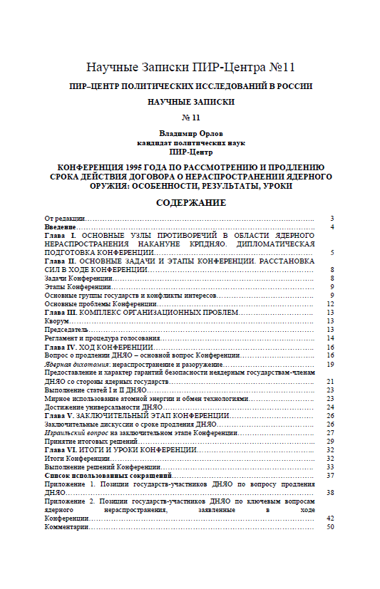 №11 (1999). Конференция 1995 года по рассмотрению и продлению срока действия ДНЯО