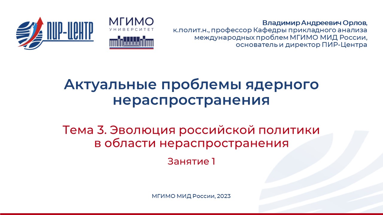 Эволюция российской политики в области нераспространения. Лекция 1