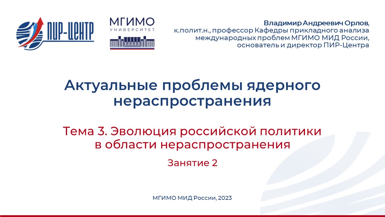 Эволюция российской политики в области нераспространения. Лекция 2
