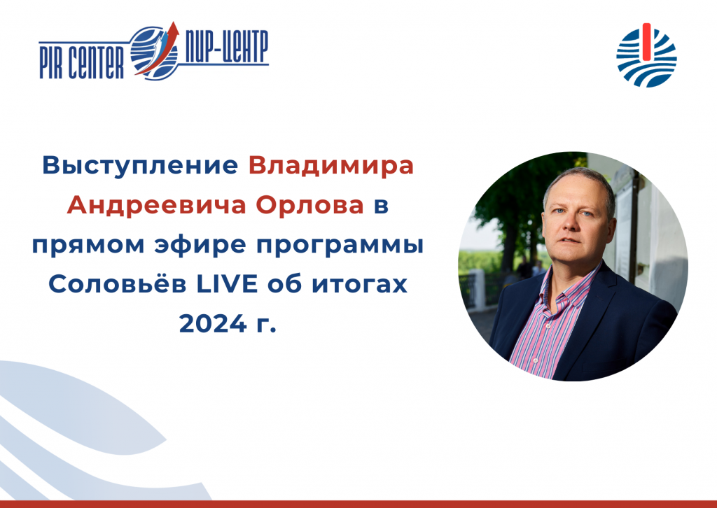 Директор и основатель ПИР-Центра, профессор МГИМО МИД России Владимир Орлов выступил в прямом эфире Соловьёв LIVE, где обсудил с Дмитрием Евстафьевым итоги уходящего года.