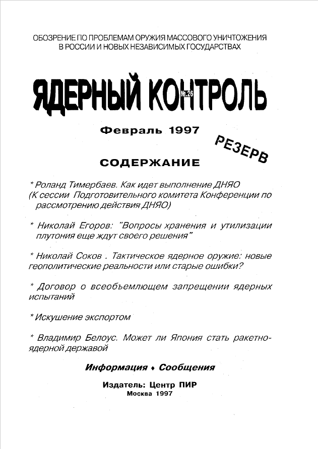 Химическое Оружие и Вопросы Его Уничтожения №3 зима 1997