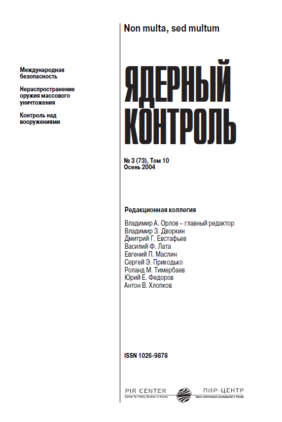 Ядерный Контроль – электронный журнал. 1-8 сентября, 2004 г.