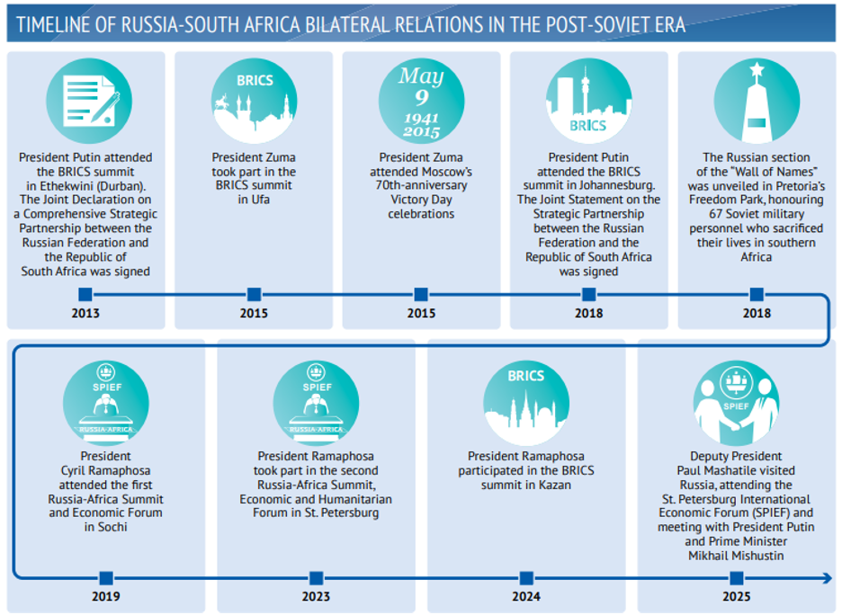Figure 116. Timeline of Russia – South Africa Bilateral Relations in the Post-Soviet Era (key events from 2013 to 2025)