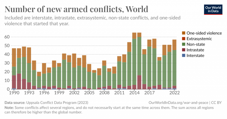 Source: Our World In Data (https://ourworldindata.org/grapher/number-of-new-armed-conflicts)