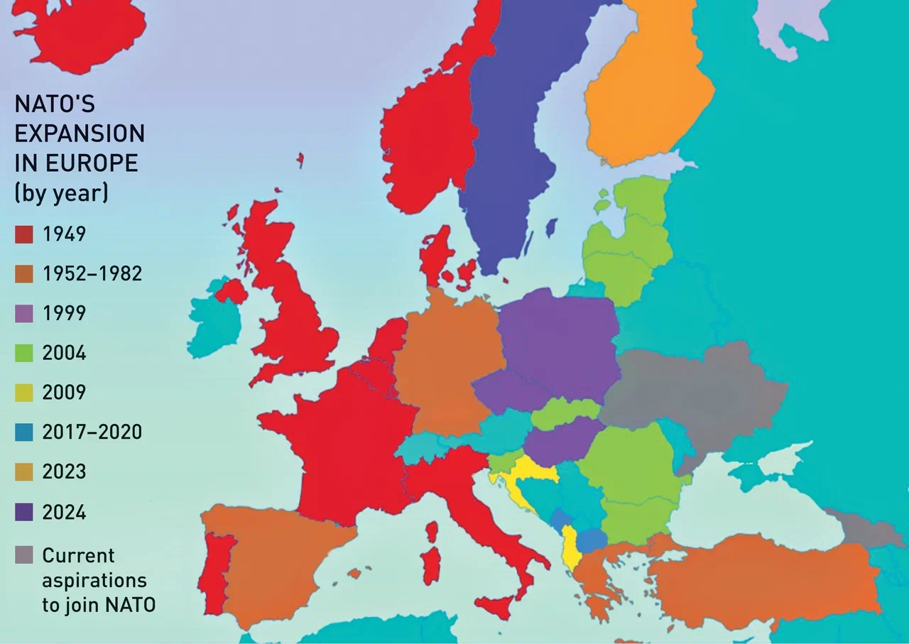 Source: Official Website of the Russian President (http://en.kremlin.ru/) Map 10. NATO Expansion in Europe (By Year) (2024).