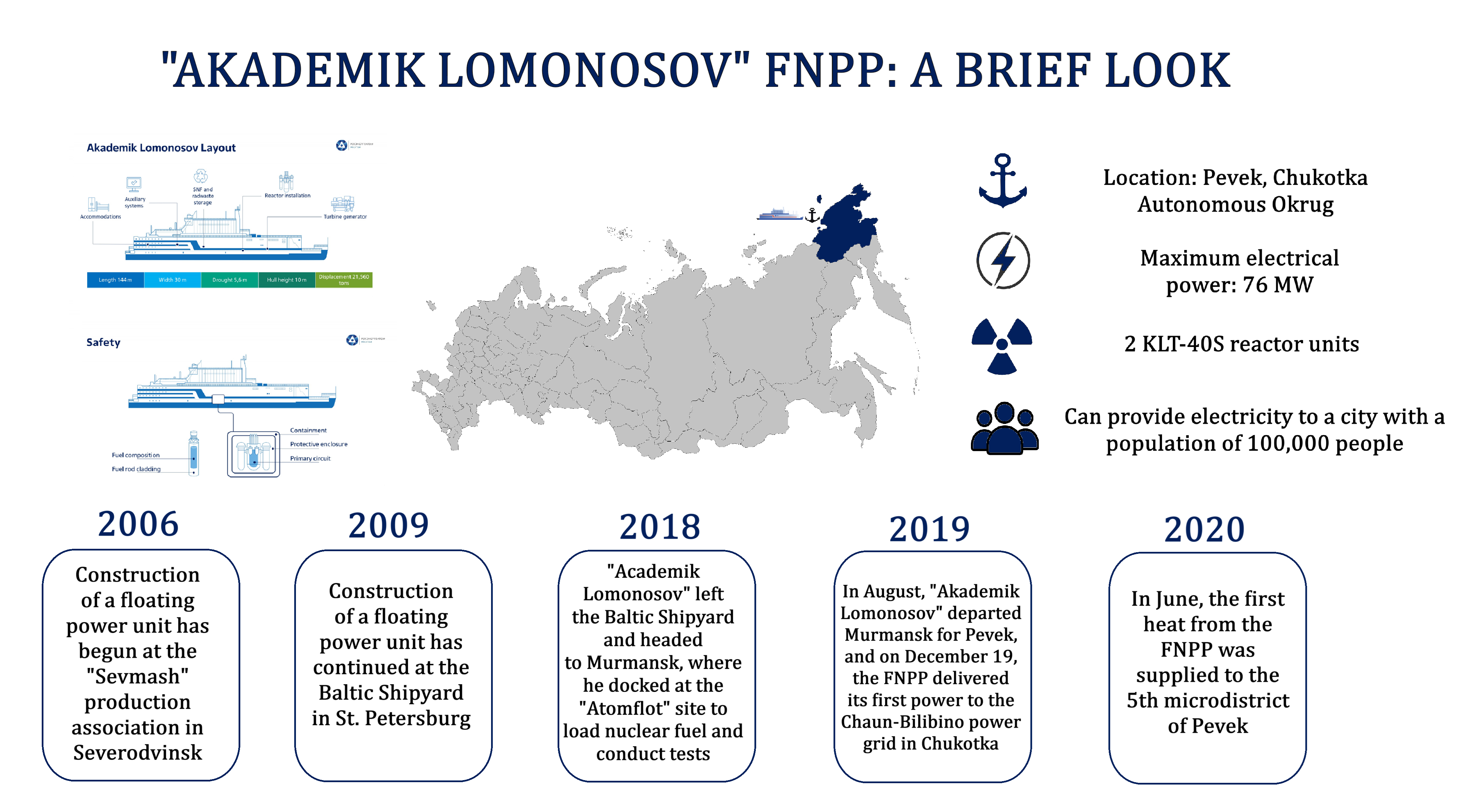 From a technical point of view, a floating nuclear power plant is a unique and reliable solution, but its operation is only feasible in certain cases. A number of African countries have expressed interest in acquiring FNPPs, but they will not solve even a fraction of the energy problems currently facing these countries[14]. FNPPs are a new project, however, so it is reasonable to assume that their potential applications, as well as technological improvements, will expand and make them more profitable.