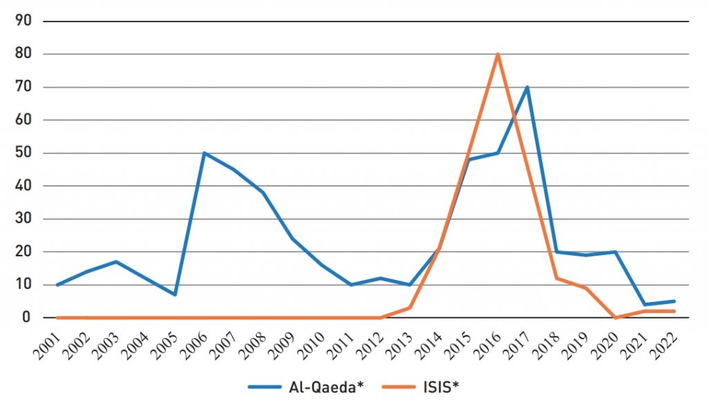 Figure 13. Dynamics of Terrorist Attacks in Cyberspace (2001-2022)