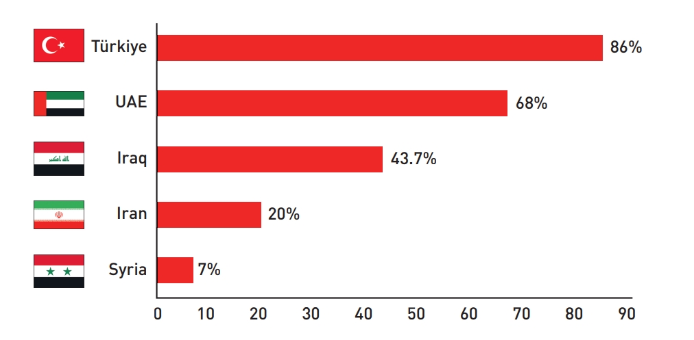 Figure 15. Trade between Russia and the Middle East Countries from 2022 to 2021 (percent of growth)