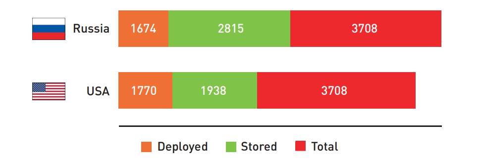 Figure 19. Number of Warheads in the Arsenals of the US and Russia (2023)