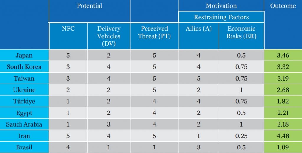 Figure 21. Potential of Certain Countries and Territories to Acquire Nuclear Weapons in a Middle Term