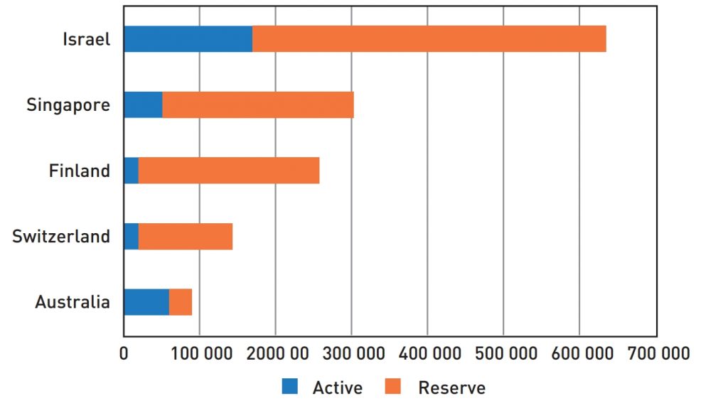 Figure 23. Armed Forces Personnel (Active and Reserve) as Percentage of Population in Select Developed Countries