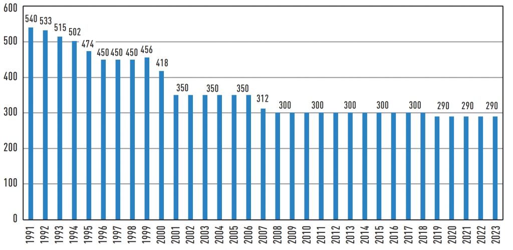 Figure 24. Number of France’s Nuclear Warheads (1991-2023)