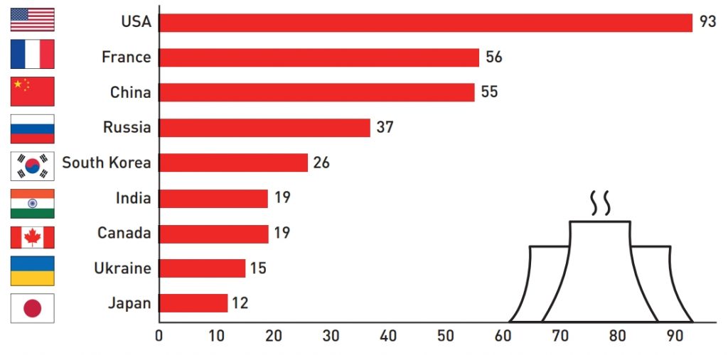 Figure 4. The Countries with the Largest Number of Nuclear Reactors. Number of Operational Reactor Units by Country (as of February 2024)
