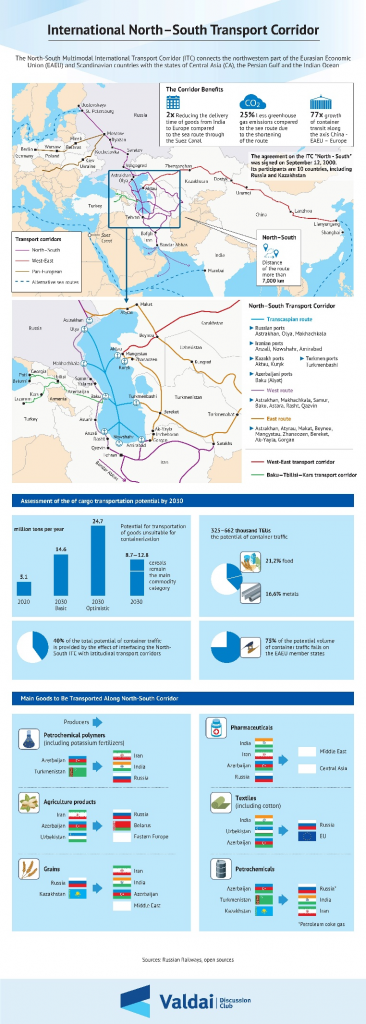 In terms of economic development, Iran and Russia are enjoying greater freedom to develop bilateral cooperation under sanctions because otherwise their priorities would make them fall apart again. To sustain that new attitude to one another, they need to find ways to benefit from the economic cooperation. Tariffs abolishment under the agreement between Iran and the EAEU is a major practical step towards this goal. Another one is the decision to connect the railway systems of the two states through Azerbaijan. Russia is investing 1.3 billion euros in order to complete the construction of the 162 km-long Rasht-Astara railway before 2028[16].