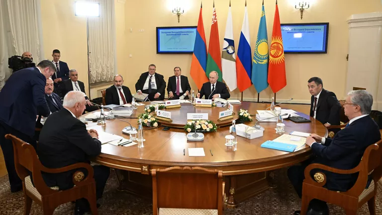 December 25, 2023 – The final summit of the year of the Eurasian Economic Union (EAEU) was held in Saint Petersburg. The Summit was marked by the signing of the Declaration on the development of the Eurasian Economic Union until 2045 called the Eurasian Economic Way. In addition, the presidents of the EAEU member states signed an agreement on the creation of a full-fledged free trade zone with Iran.