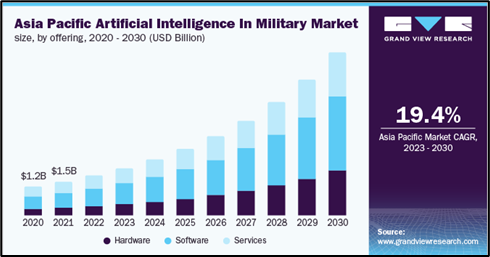 Respectively, the graph presented demonstrates the tendency of increasing the importance and military market share of AI in the Asia Pacific in the 2020s[5].