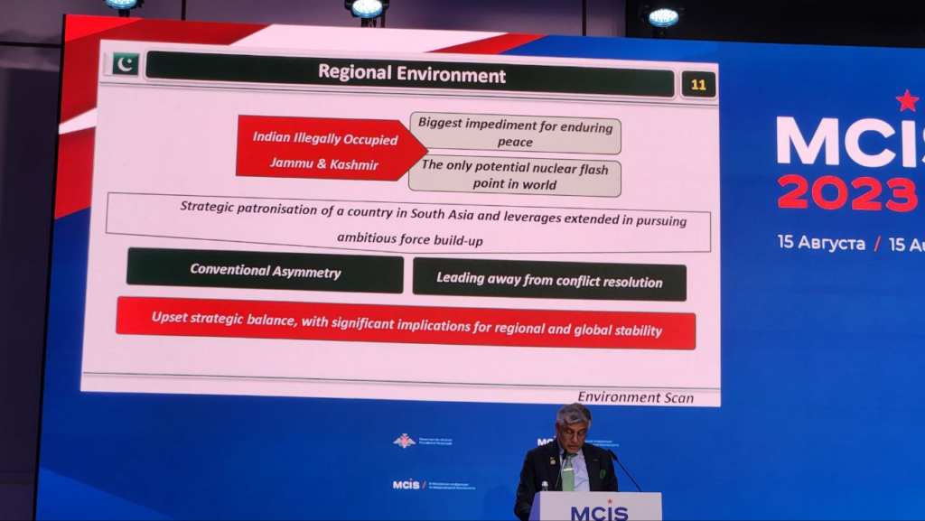 Another regional security challenge in the Asia-Pacific covered during the respective session was the situation over Kashmir. It is worth highlighting that while Rajnath Singh, the Indian Defense Minister, expressed general and vague views on the importance of non-violence and avoidance of escalation in the face of competition, their Pakistani counterparts’ speech, represented by Hamood Uz Zaman Khan, the Deputy Defense Minister, has been one of the most conceptual and straightforward. Most importantly, he pointed out that Kashmir is the only place on Earth where a direct nuclear exchange seems possible.