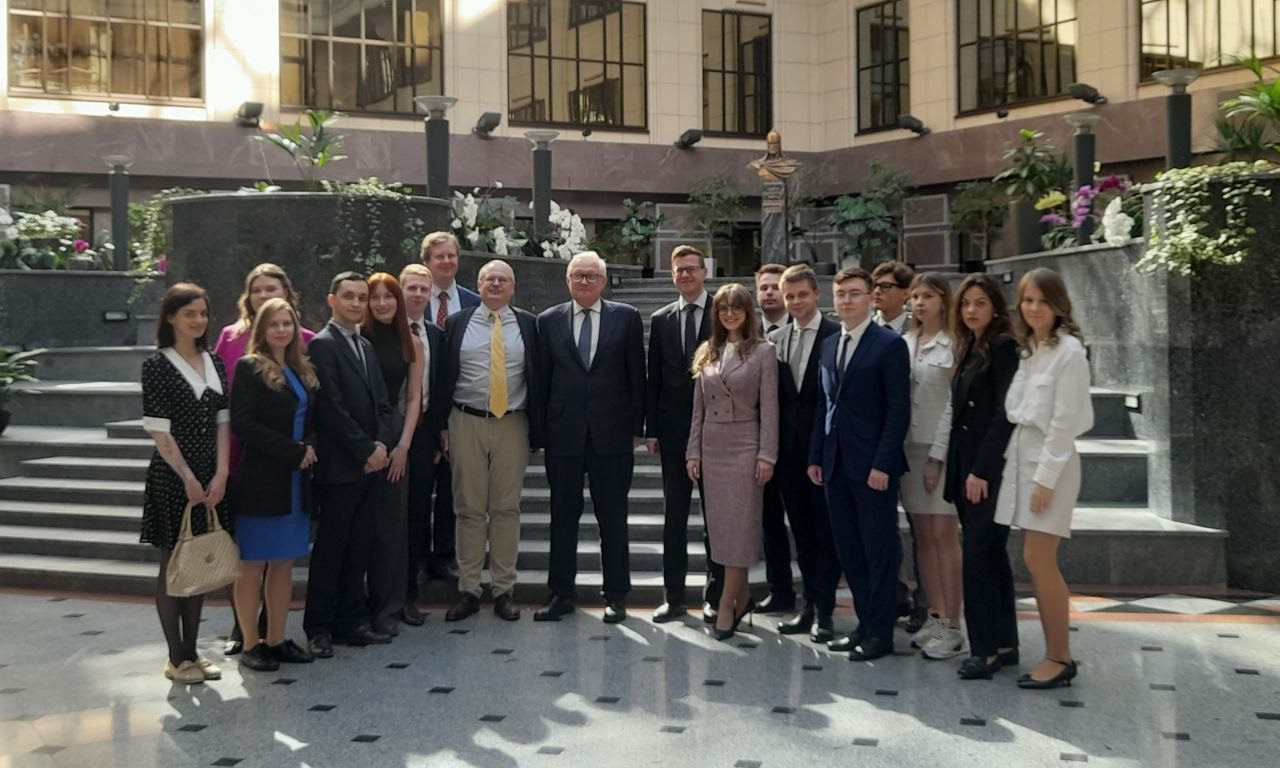 On May 24, 2024, the Russian Foreign Ministry welcomed first-year students of the MGIMO Diplomatic Service Master’s program, meeting H.E. Sergey Ryabkov, Deputy Foreign Minister of the Russian Federation. The students are taking a special course, titled The Current Nuclear Nonproliferation Issues, taught by Dr. Vladimir Orlov, Founding Director of PIR Center and Professor at MGIMO University. The meeting was also attended by Dr. Igor Istomin, Head of the Department of Applied Analysis of International Problems, MGIMO University, Member of PIR Center Advisory Board; Konstantin Vorontsov, Deputy Director of the Department for Nonproliferation and Arms Control of the Ministry of Foreign Affairs of the Russian Federation; Elena Karnaukhova, PIR Center Deputy Director-Education & Training Program Director; and Sviatoslav Arov, PIR Center Junior Research Fellow.