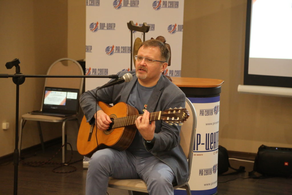 The stars of the Play me Music heading were General Director of PIR Press LLC Tatiana Zhdanova, who played domra, as well as Vadim Kozyulin, consultant of PIR Center, Head of the Center for Global Studies & International Organizations of the Institute for Contemporary International Studies of the Diplomatic Academy of the Ministry of Foreign Affairs of the Russian Federation, who pleased the participants of the meeting with bard songs played with the guitar. The musical evening ended with a performance of Oleg Shakirov, a consultant of PIR Center, who read rap compositions on some burning problems of international relations under the heading “And in my soul I sing“.
