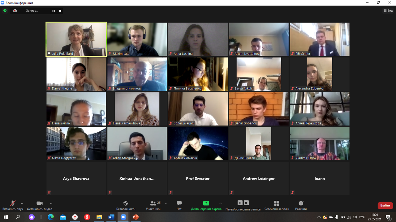 On May 27, the Midweek Brainstorming session “Prospects for the development of the situation around the INP in case of strengthening the position of conservatives in the political life of Iran” was held. PIR Center Consultant Yulia Sveshnikova presented the main provisions of her research work on the topic.