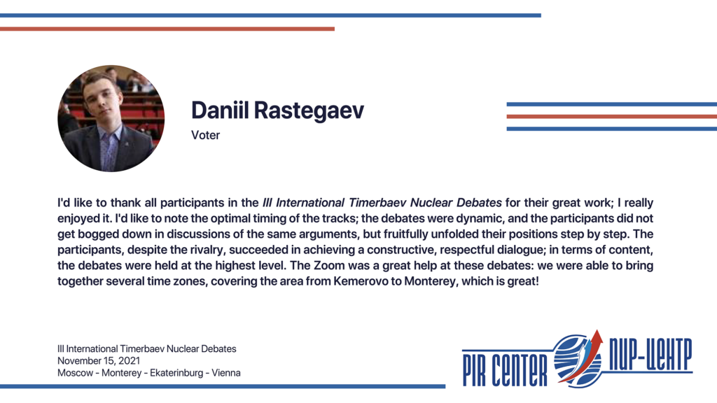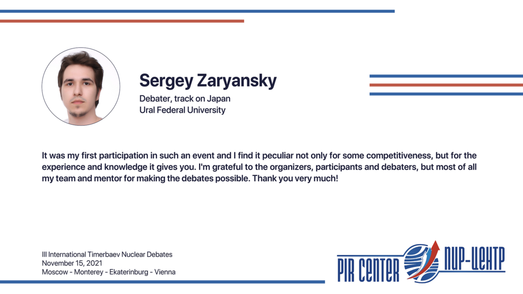 For more information on III International Timerbaev Nuclear Debates and educational projects of PIR Center do not hesitate to contact us via edu@pircenter.org.