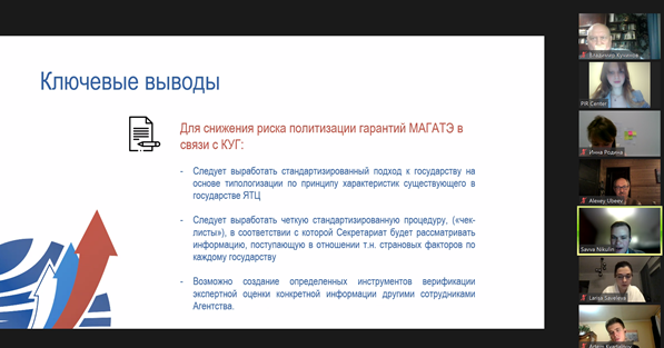 On November 25, PIR Center held the new Midweek Brainstorming session on the topic “State-level Concept and Politicization of the IAEA Safeguards System”. Savva Nikulin, student of the Dual Degree M.A. Program Global Security, Nuclear Policy, WMD Nonproliferation (MGIMO University, MIIS, and PIR Center) presented for further discussion his report prepared within the internship at PIR Center.