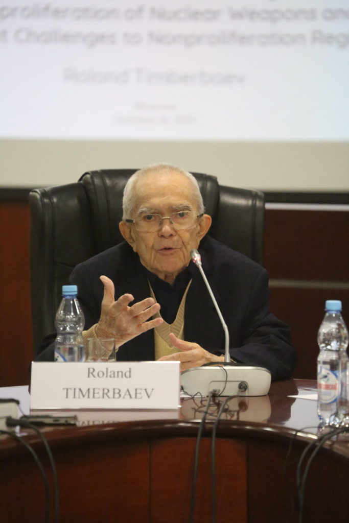 MOSCOW, OCTOBER 18, 2017. PIR PRESS – “In the Universe there is a certain order of its existence, we are part of the universe, and we swung to an atom and decided to create a weapon, that could be a way of destroying the present mankind. I do not know if I understood this in 1995, but now and for a long time I am convinced that this is one of the ways of the extinction of mankind, and it can happen. Every day, it is necessary to think about how to avoid the annihilation of mankind” – Extraordinary and Plenipotentiary Ambassador Roland Timberbaev, member of the PIR Center Advisory Board.