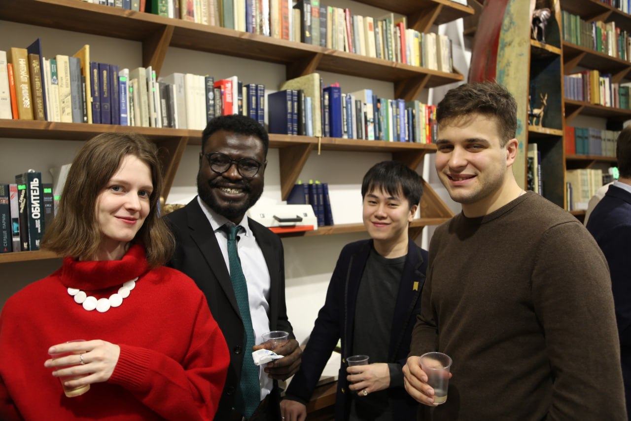 (Нижний ряд, слева направо): Герман Селявин, студент 2-го курса магистерской программы «Международная безопасность», (в 2024–2025 гг. – стажёр ПИР-Центра), член Сообщества «Под знаком ПИР» с 2024 г.; Марат Бердыев, Чрезвычайный и Полномочный Посол РФ, Посол МИД России по особым поручениям, член Экспертного совета ПИР-Центра с 2024 г., член Сообщества «Под знаком ПИР» с 2025 г.; Есения Косулина, студентка 2-го курса магистерской программы «Международная безопасность», ответственный секретарь Международного клуба «Триалог», член Сообщества «Под знаком ПИР» с 2024 г. Студенты 1-го курса магистерской программы «Международная безопасность» на мероприятии ПИР-Центра, приуроченного к празднованию Старого Нового года, Одинцовский район, Московская область, 13 января 2026 г.: (слева направо): Ирина Клименкова, Махамат Ахмат, Такая Согабе и Артём Шаринян Студенты 2-го курса магистерской программы «Международная безопасность» и члены Сообщества «Под знаком ПИР» на мероприятии ПИР-Центра, приуроченного к празднованию Старого Нового года, Одинцовский район, Московская область, 13 января 2026 г.: