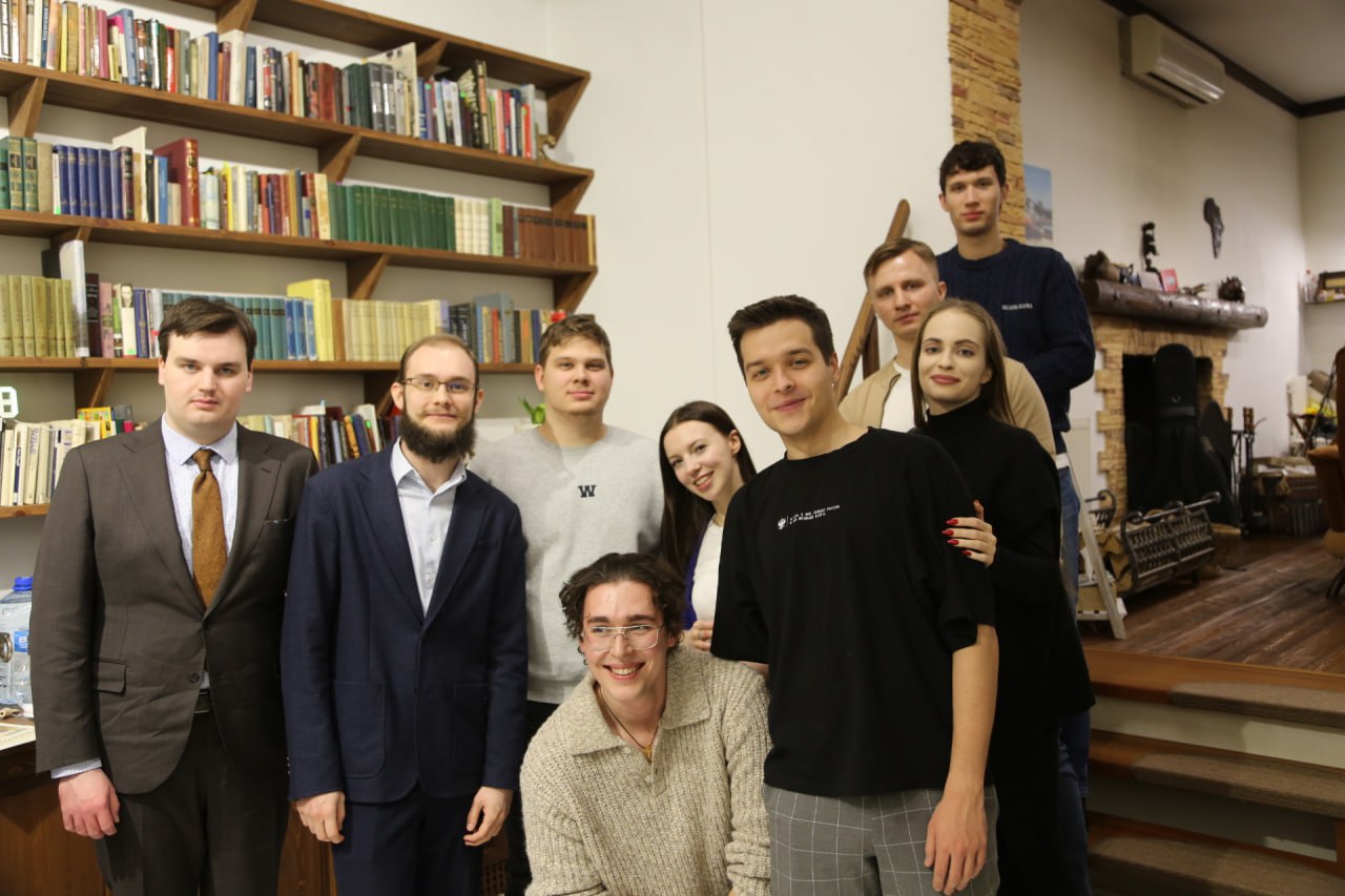 (Слева направо): Виктор Курицын, студент 2-го курса магистерской программы «Международная безопасность», член Сообщества «Под знаком ПИР» с 2024 г.; Кирилл Прохоров, студент 2-го курса магистерской программы «Международная безопасность», член Сообщества «Под знаком ПИР» с 2024 г., победитель грантового конкурса им. В.И. Трубникова в 2025 г.; Ярослав Елесин, студент 2-го курса магистерской программы «Международная безопасность», член Сообщества «Под знаком ПИР» с 2024 г.; Алексей Григорьев, студент 2-го курса магистерской программы «Международная безопасность», член Сообщества «Под знаком ПИР» с 2024 г.; Софья Дандыль, студентка 2-го курса магистерской программы «Международная безопасность», член Сообщества «Под знаком ПИР» с 2024 г.; Владислав Батманов, студент 2-го курса магистерской программы «Международная безопасность», член Сообщества «Под знаком ПИР» с 2024 г.; Екатерина Болычевская, студентка 2-го курса магистерской программы «Международная безопасность», член Сообщества «Под знаком ПИР» с 2024 г.; Артем Плаксий, студент 2-го курса магистерской программы «Международная безопасность», член Сообщества «Под знаком ПИР» с 2024 г.; Василий Придеин, студент 2-го курса магистерской программы «Международная безопасность», член Сообщества «Под знаком ПИР» с 2024 г. Вадим Козюлин, консультант и член Совета ПИР-Центра, член Сообщества «Под знаком ПИР» с 1994 г., и Дарья Морозова, студентка 2-го курса магистерской программы «Международная безопасность», член Сообщества «Под знаком ПИР» с 2024 г., на мероприятии ПИР-Центра, приуроченного к празднованию Старого Нового года, Одинцовский район, Московская область, 13 января 2026 г. Фандзю Цзян, студент 2-го курса магистерской программы «Международная безопасность», член Сообщества «Под знаком ПИР» с 2024 г., исполнил китайскую народную песню на мероприятии ПИР-Центра, приуроченного к празднованию Старого Нового года, Одинцовский район, Московская область, 13 января 2026 г. Фейхань Ван, студентка 2-го курса магистерской программы «Международная безопасность», член Сообщества «Под знаком ПИР» с 2024 г., исполнила китайскую народную песню на мероприятии ПИР-Центра, приуроченного к празднованию Старого Нового года, Одинцовский район, Московская область, 13 января 2026 г. Владимир Орлов, основатель и директор ПИР-Центра, член член Сообщества «Под знаком ПИР» с 1994 г., читает стихотворение на мероприятии ПИР-Центра, приуроченного к празднованию Старого Нового года, Одинцовский район, Московская область, 13 января 2026 г. Руслан Белозерский, студент 2-го курса магистерской программы «Международная безопасность», член Сообщества «Под знаком ПИР» с 2024 г., читает стихотворение на мероприятии ПИР-Центра, приуроченного к празднованию Старого Нового года, Одинцовский район, Московская область, 13 января 2026 г. Герман Селявин, студент 2-го курса магистерской программы «Международная безопасность», (в 2024–2025 гг. – стажёр ПИР-Центра), член Сообщества «Под знаком ПИР» с 2024 г., исполняет песню на мероприятии ПИР-Центра, приуроченного к празднованию Старого Нового года, Одинцовский район, Московская область, 13 января 2026 г. Андрей Белоусов, Посол МИД России по особым поручениям, член Экспертного совета ПИР-Центра с 2024 г., член Сообщества «Под знаком ПИР» с 2024 г., читает стихотворение на мероприятии ПИР-Центра, приуроченного к празднованию Старого Нового 