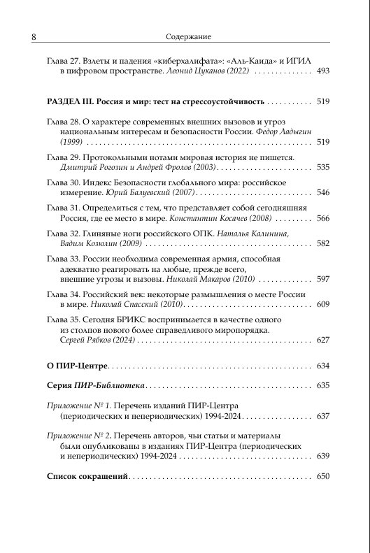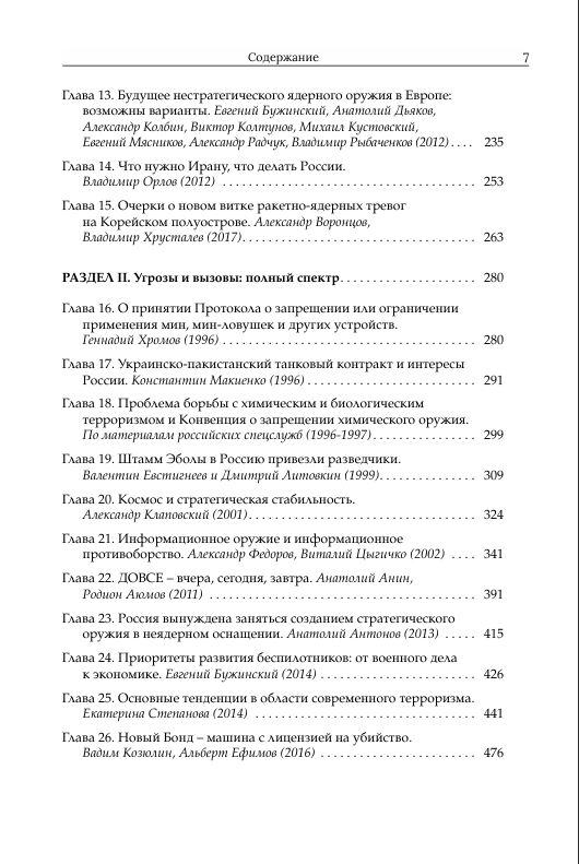 В Антологии представлены избранные статьи, аналитические материалы и экспертные интервью, опубликованные за последние 30 лет под эгидой ПИР-Центра. В них представлена эволюция взглядов на проблемы в сфере нераспространения ядерного оружия, контроля над вооружениями и глобальной безопасности. На страницах книги читатель найдет научно-практические труды, посвященные вызовам и угрозам ДНЯО, а также усилиям, направленным на его укрепление; обеспечению физической ядерной безопасности; перспективам развития атомной энергетики в России и в мире; многим другим актуальным проблемам глобальной и региональной безопасности. Обширный блок вошедших в Антологию материалов посвящен военно-политическим вопросам: обеспечению стратегической стабильности, противодействию угрозе терроризма, в том числе с использованием оружия массового уничтожения, проблемам европейской безопасности, развитию боевых беспилотников и робототехники, военно-техническому сотрудничеству, ситуации в области регулирования обычных вооружений и т.д. Пристальное внимание авторы Антологии уделяют формированию нового мирового порядка и значению этих процессов для российской внешней и оборонной политики. Читатель удивится, насколько статьи, написанные десять, двадцать, тридцать лет назад остро актуальны сегодня. «На злобу дня» – вот рубрика, в которых могло бы появиться большинство из материалов, вошедших в Антологию, хотя для них заготовлена и другая рубрика, куда более историческая – «Листая старые страницы».