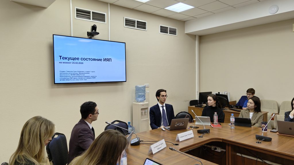 С презентацией о состоянии иранской ядерной программы и иранской ядерной инфраструктур после ирано-израильско-американской войны июня 2025 г. выступил студент 1-го курса магистерской программы МГИМО МИД России и ПИР-Центра «Международная безопасность» Грант Геворгян. Возможные сценарии развития событий вокруг Ирана проанализировал помощник директора ПИР-Центра Артём Аствацатуров.