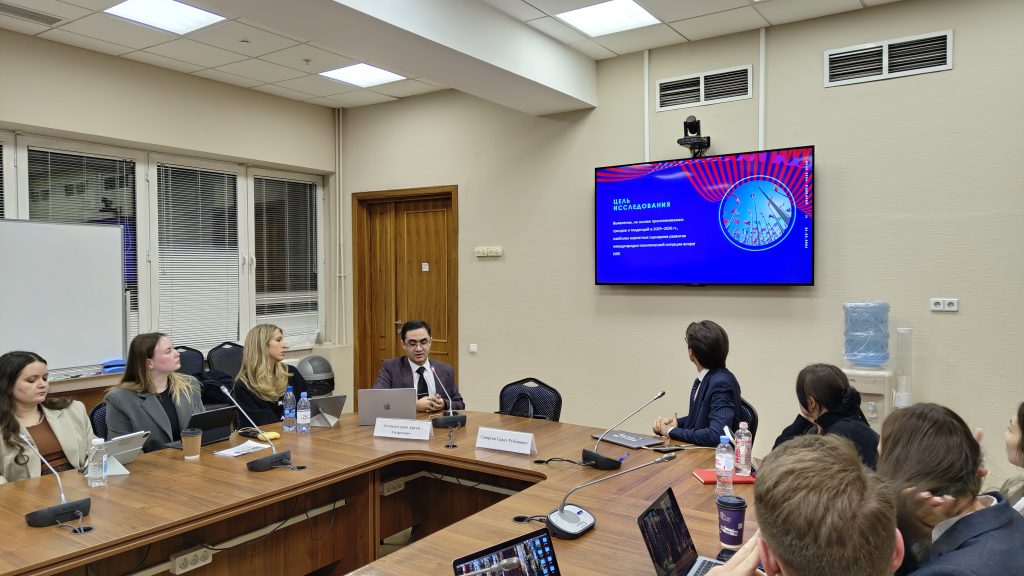 С презентацией о состоянии иранской ядерной программы и иранской ядерной инфраструктур после ирано-израильско-американской войны июня 2025 г. выступил студент 1-го курса магистерской программы МГИМО МИД России и ПИР-Центра «Международная безопасность» Грант Геворгян. Возможные сценарии развития событий вокруг Ирана проанализировал помощник директора ПИР-Центра Артём Аствацатуров.