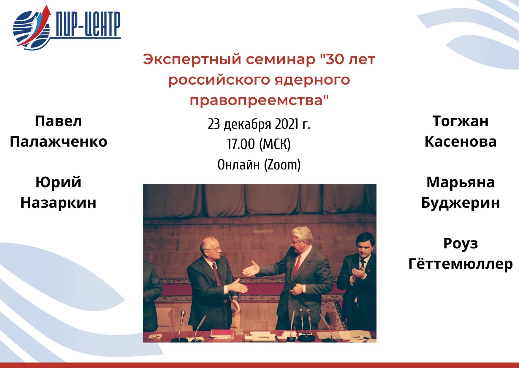 Сегодня, 23 декабря, в 17.00 по МСК состоится семинар “30 лет российского ядерного правопреемства” в онлайн-формате. Регистрация по ссылке.