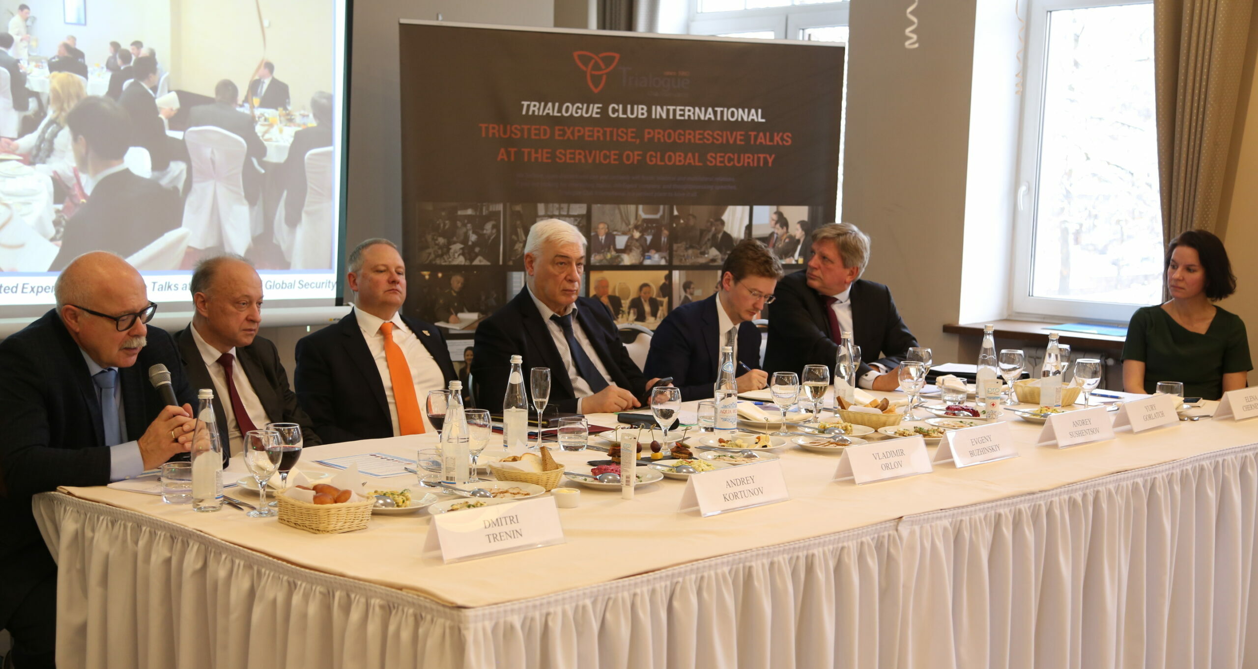 116-е зимнее заседание Международного клуба Триалог прошло в формате панельной дискуссии. В качестве панелистов участие в мероприятии приняли член Совета ПИР-Центра, ведущий научный сотрудник Центра международной безопасности ИМЭМО РАН Дмитрий Тренин; директор Российского совета по международным делам, член Экспертного совета ПИР-Центра Андрей Кортунов; декан факультета международных отношений МГИМО МИД России, программный директор дискуссионного клуба Валдай Андрей Сушенцов; президент Международного клуба Триалог, директор и основатель ПИР-Центра, профессор МГИМО МИД России Владимир Орлов; директор Ситуационно-кризисного центра МИД России Юрий Горлач.