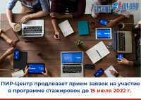 ПИР-Центр продлевает прием заявок на участие в программе стажировок и практик во втором полугодии 2022 г. до 15 июля 2022 г.