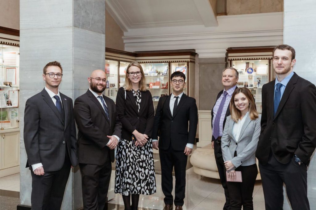 По приглашению депутата Государственной думы, члена Комитета по международным делам, координатора парламентской группы Госдумы по связям с Конгрессом США Инги Юмашевой 18 ноября 2019 г. студенты магистерской программы двойного диплома в области нераспространения, реализуемой совместно МГИМО, ПИР-Центром и Миддлберийским институтом международных исследований, вместе с директором ПИР-Центра Владимиром Орловым и директором Образовательной программы Юлией Сыч посетили Государственную Думу Федерального Собрания Российской Федерации.