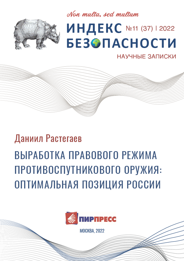 Вышел новый номер научной записки Индекс Безопасности с докладом Даниила Растегаева «Выработка правового режима противоспутникового оружия: оптимальная позиция России»