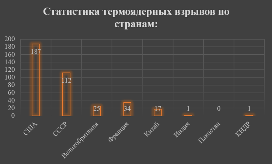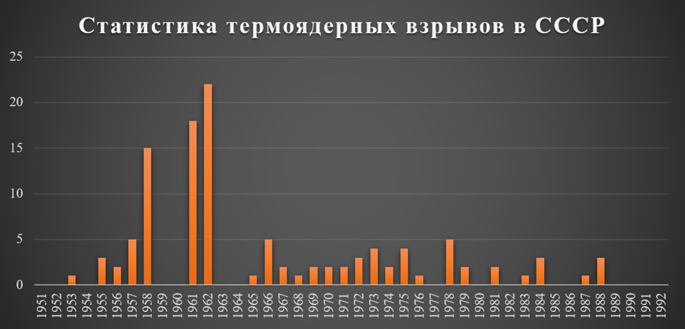 В случае отсутствия точной информации о характере взрыва к термоядерным были отнесены те, мощность которых составила более 80 кт.